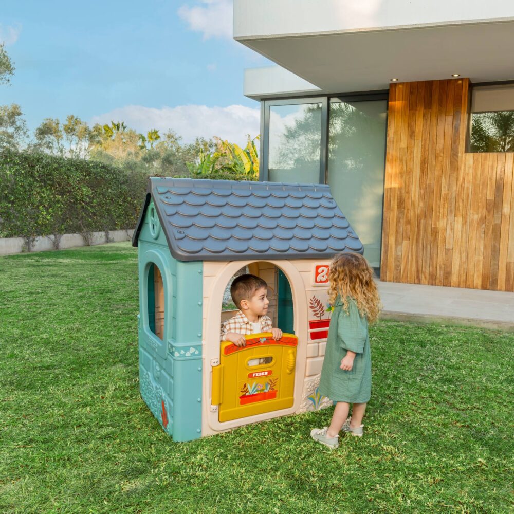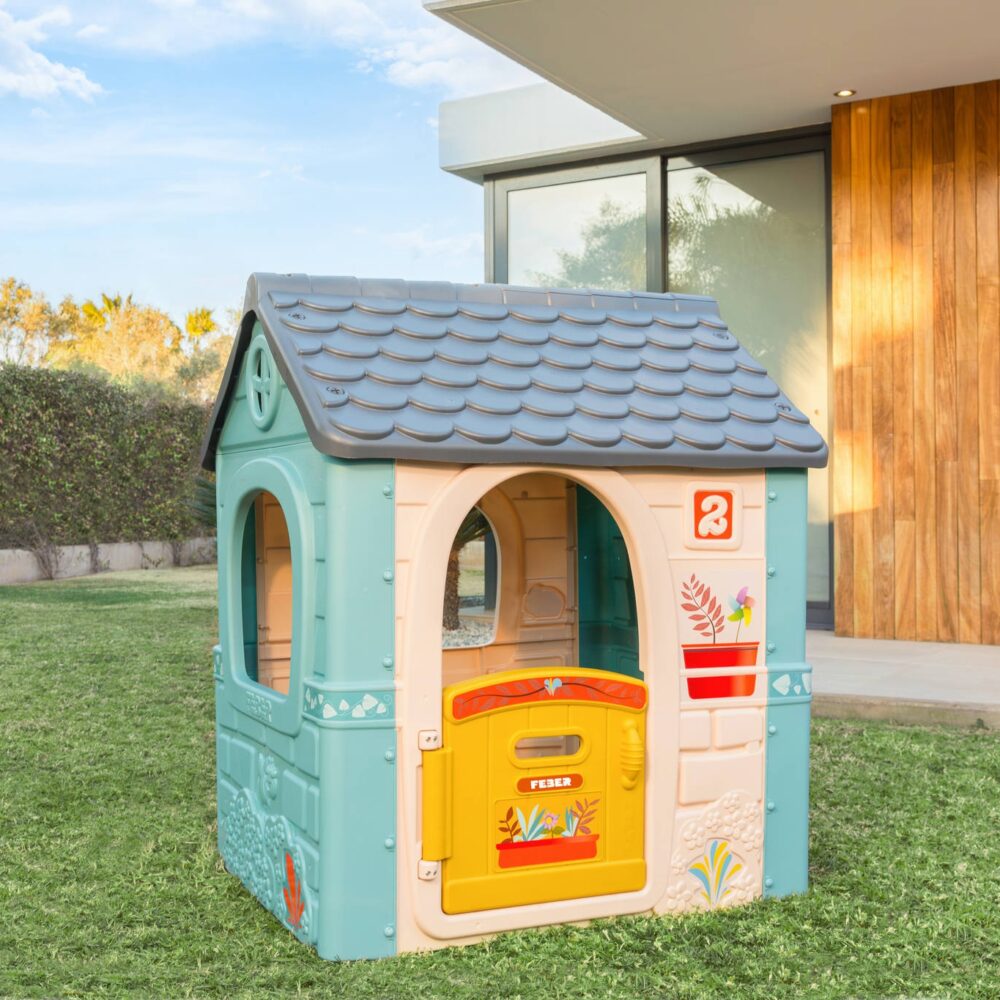 FEBER Casual sodo namelis pasižymi prislopinta spalvų gama, kuri traukia dėmesį ir harmoningai dera su aplinkiniu sodu . Pasteliniai mėlynos, žalios ir geltonos spalvos atspalviai sukuria malonią paletę, skatinančią atsipalaidavimą ir kūrybinį žaidimą. Namelio prislopintos spalvos yra atsparios blukimui dėl anti-UV dangos , todėl jis ilgą laiką išliks estetiškai patrauklus, nepriklausomai nuo oro sąlygų.