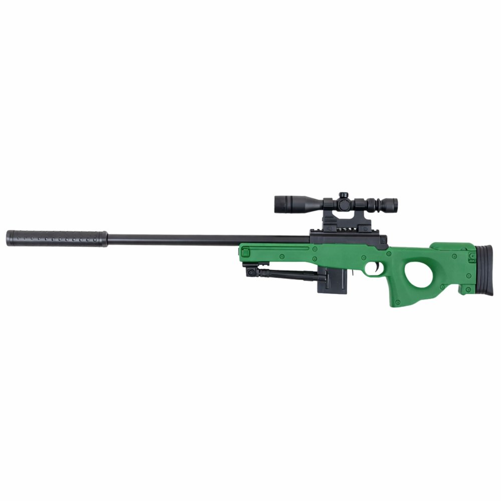 Šautuvas veikia spyruokliniu mechanizmu – vienas užtempimas, vienas šūvis. Jokios elektronikos, jokių baterijų, tik paprastas ir intuityvus veikimas. Rinkinyje yra optinis taikiklis, kuris padeda tiksliau nusitaikyti, ir dvikojis, suteikiantis stabilumo šaudymo metu. Taip pat pridedamas duslintuvas ir dėtuvė.