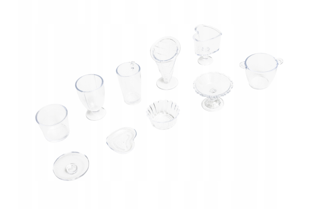 - 8 įvairios dekoracijos: vaisiai, drugeliai, kriauklės, širdelės, rutuliukai/perlai, įvairių dydžių ir spalvų medžiagos – atsitiktinai