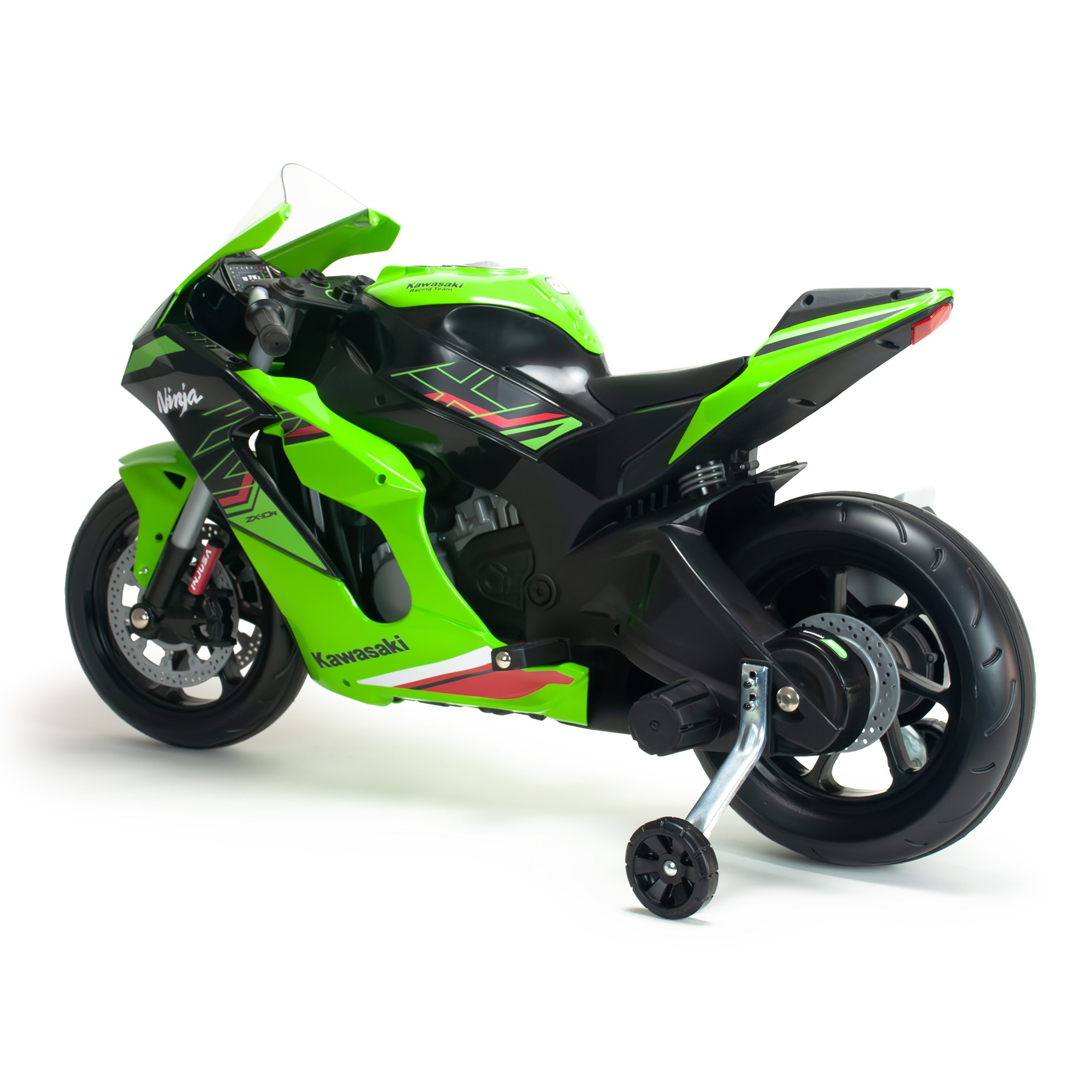 Injusa „Kawasaki Ninja ZX R10“ 12V elektrinis motociklas – tai tikra svajonė mažiesiems motorizmo gerbėjams! Realistiškas dizainas, sukurtas pagal tikrą Kawasaki Ninja ZX R10 modelį, leidžia vaikui pasijusti lyg tikrame lenktynių žiede nuo pirmos akimirkos. Galingas 12V variklis užtikrina sklandų ir saugų važiavimą, o paprastas valdymas padeda mokytis pirmųjų manevrų.