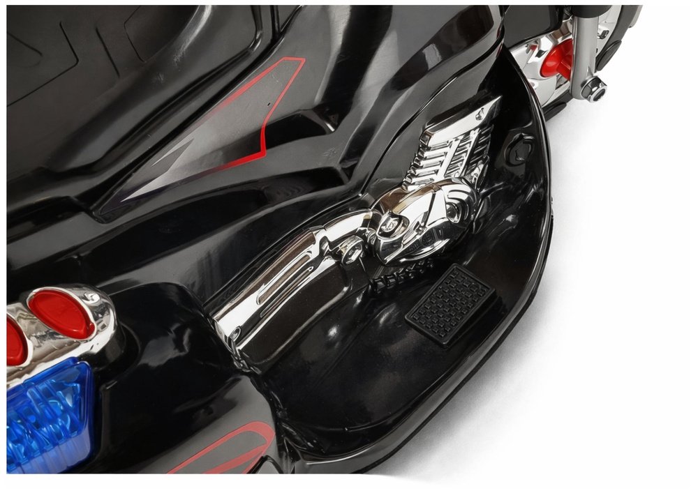 Ryškiai blizgus juodas kėbulas, spalvingi lipdukai ir chromo imitacijos detalės suteikia motociklui tikrovišką, sportišką įvaizdį. Tvirta ABS plastiko konstrukcija užtikrina ilgaamžiškumą, o trijų ratų sistema suteikia stabilumo vaikams, kurie dar tik mokosi išlaikyti pusiausvyrą. Tai puikus pasirinkimas kaip pirmasis elektrinis motociklas.