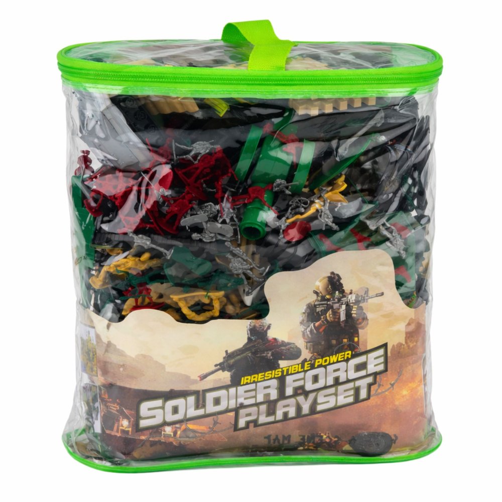✔️ Net ~300 detalių – didžiulės kūrybos galimybės ✔️ Kareiviai, transportas, ginklai, patrankos ✔️ Skaidrus užsegamas krepšys – patogiam laikymui ir kelionėms ✔️ Lavina vaizduotę, strateginį mąstymą ir motoriką ✔️ Tvirtas, atsparus plastikas ✔️ Tinka žaidimui namuose, lauke ir kelionėse
