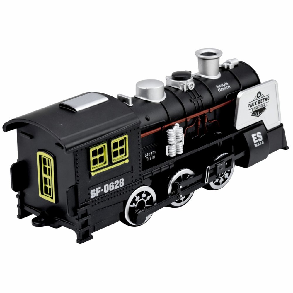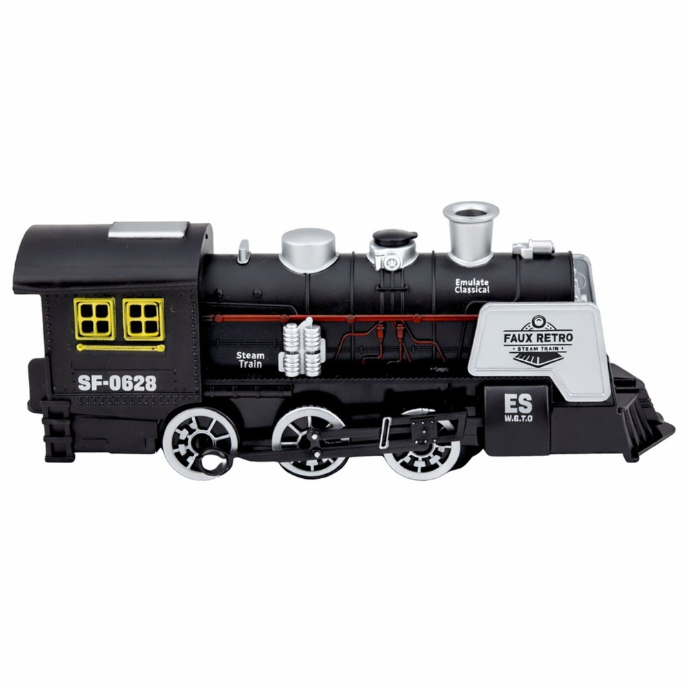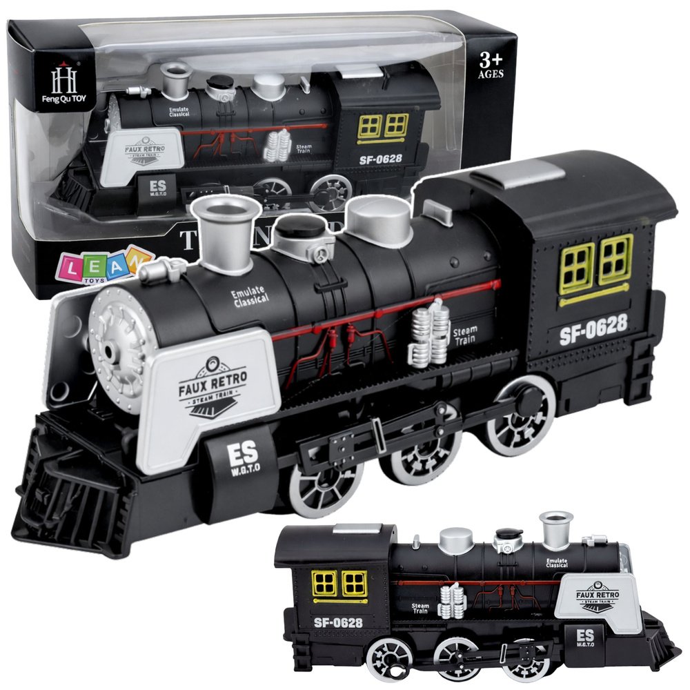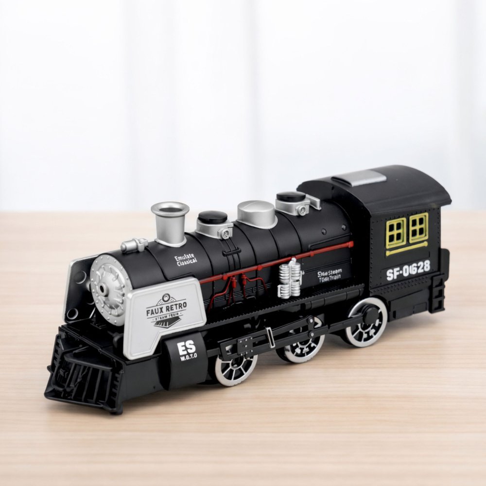 🚂💨 Klasikinė juoda lokomotyvė – garsai, dūmų efektas, kliūčių jutiklis