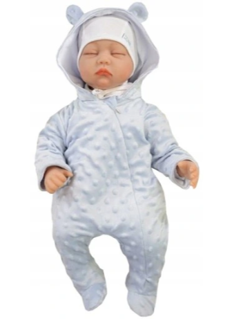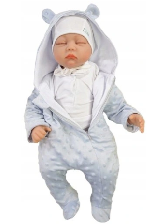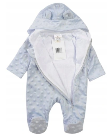 Modelis: Romperiai su gobtuvu, pasiūti iš aukštos kokybės minkšto, pliušinio minky audinio. Visas pamušalas su medvilniniu pamušalu. Užsegami įstrižai užtrauktuku. Dekoratyvinės ausys ant gobtuvo.