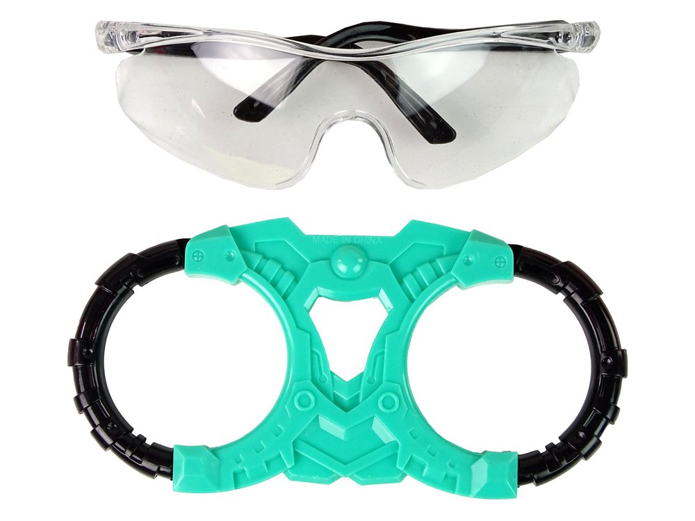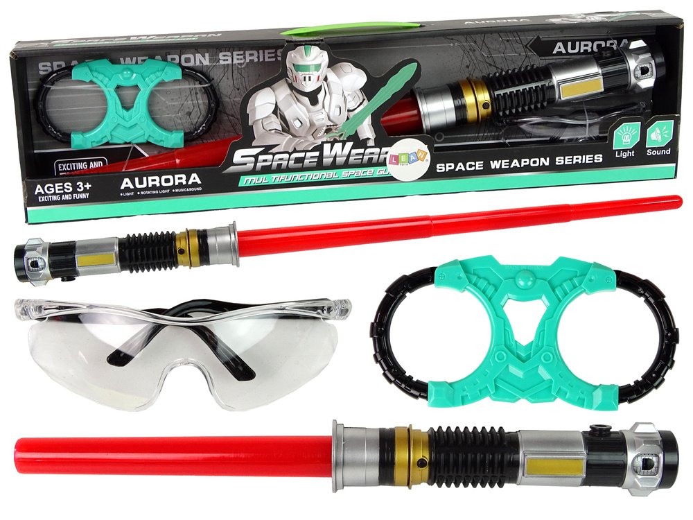 Kosminis žaislų rinkinys: šviečiantis šviesos kardas ir apsauginiai akiniai