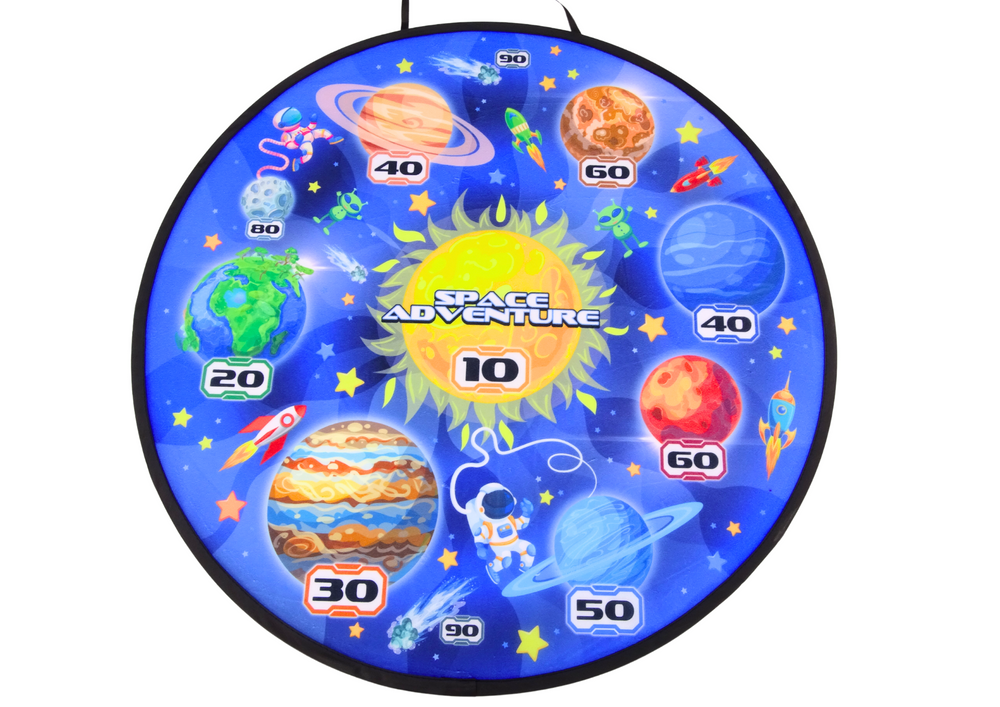 Šis kosmoso tematikos šaudymo rinkinys su skydu – įspūdingas žaislas vaikams, mėgstantiems aktyvų žaidimą, taiklumo iššūkius ir fantastinius nuotykius. Rinkinio centras – didelis, spalvingas skydas su planetų, galaktikų ir kosmoso motyvais, kuris ne tik traukia akį, bet ir skatina vaizduotę.