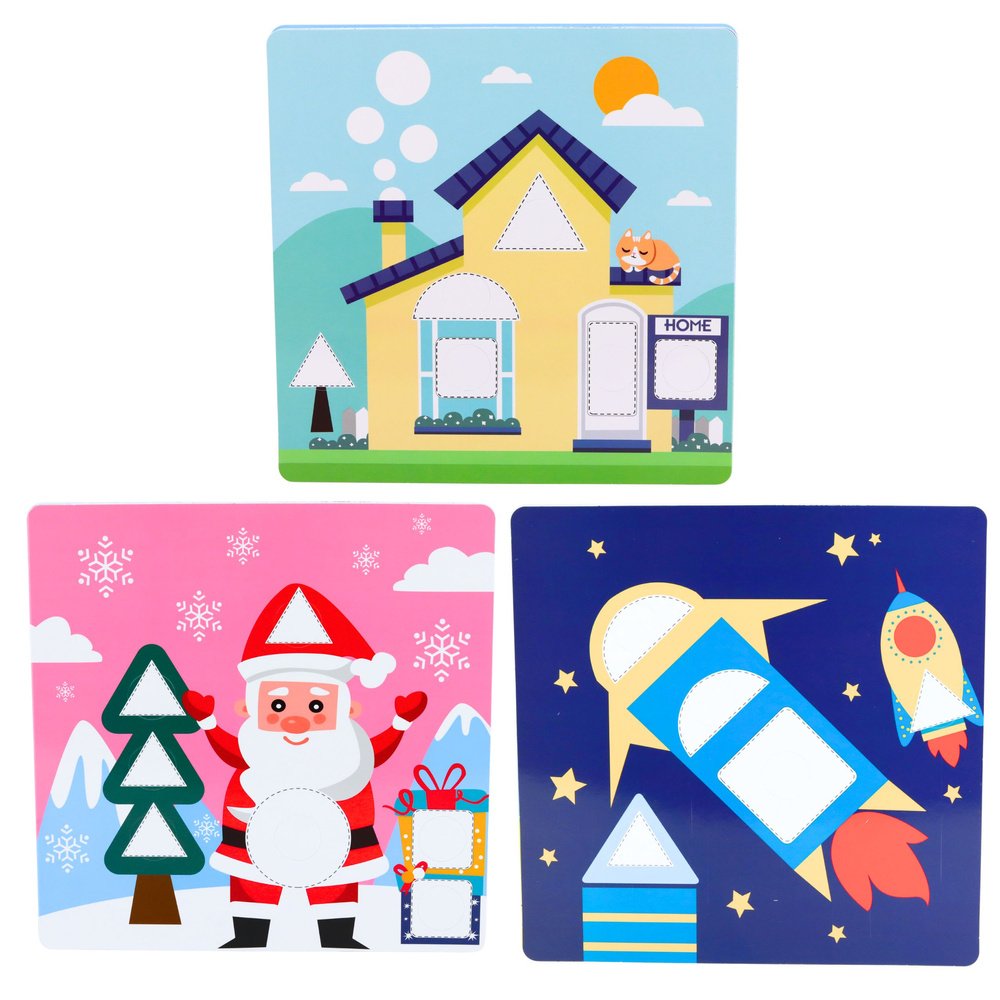 Žaidimo esmė – priderinti geometrines detales prie atitinkamų vietų paveikslėlių kortelėse. Vaikai gali naudotis rinkinyje esančiomis iliustracijomis arba kurti visiškai savus piešinius. Detalės yra lengvai sugriebiamos, saugios ir malonios liesti, todėl puikiai tinka mažoms rankytėms. Tokia veikla lavina smulkiąją motoriką, formų ir spalvų pažinimą bei loginį mąstymą.