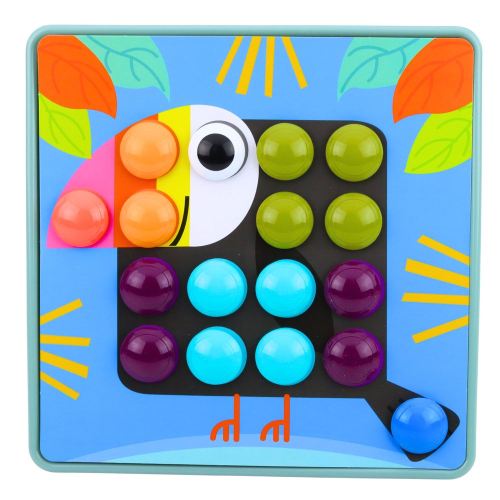 Kūrybinė mozaika „Grybukai“ – tai lavinamasis rinkinys vaikams nuo 3 metų, padedantis ugdyti smulkiąją motoriką, koncentraciją ir kūrybiškumą. Ryškiaspalviai grybukai leidžia kurti spalvingas kompozicijas, dėlioti paveikslėlius pagal korteles arba kurti visiškai savus piešinius.