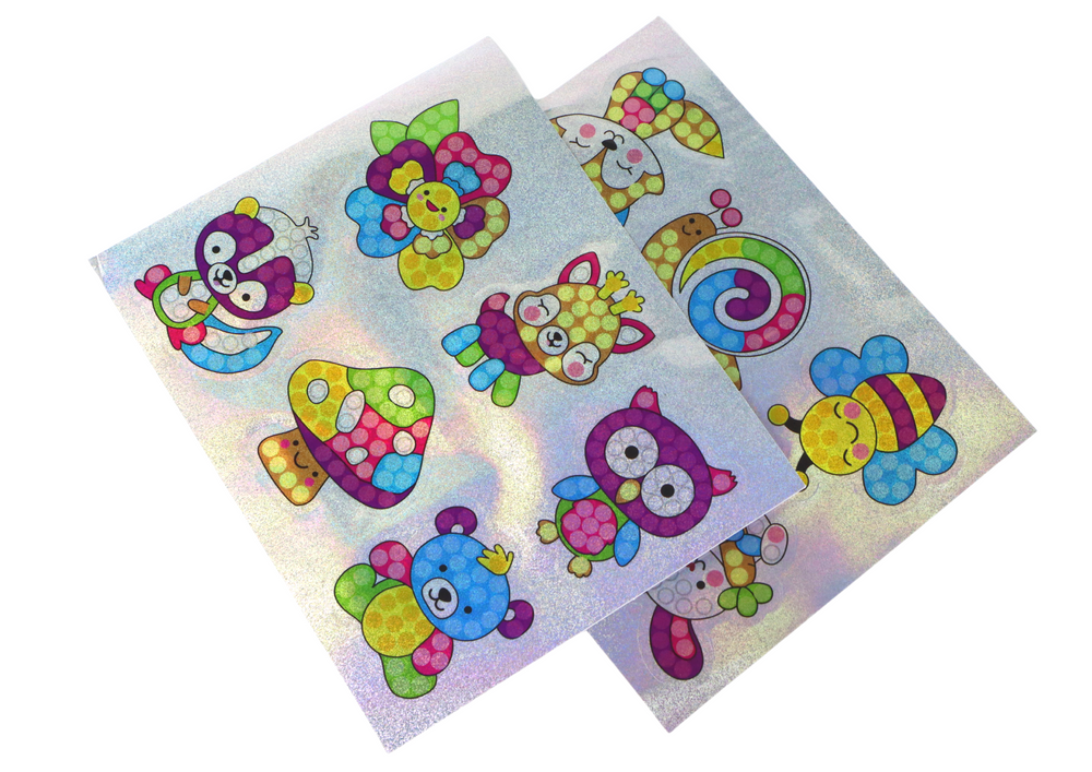 Šis rinkinys leidžia vaikams sukurti žėrinčius lipdukus su mielais gyvūnėlių motyvais. Klijuodami spalvotus „deimantukus“ ant lipnių šablonų, vaikai kuria savo rankų darbo dekoracijas, kurios puikiai tinka sąsiuviniams, penalams, kuprinėms ar dovanų maišeliams papuošti.