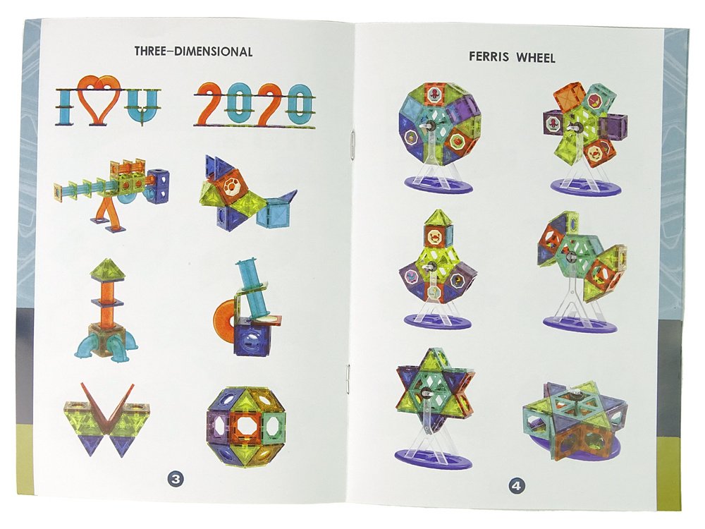 Komponentai: magnetinės detalės, šviečiantys kamuoliukai, lipdukai