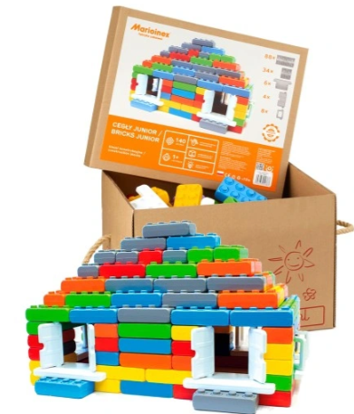 „Bricks Junior“ – tai unikalios formos kvadratiniai ir stačiakampiai plytų formos blokeliai, pagaminti iš sertifikuotų medžiagų.