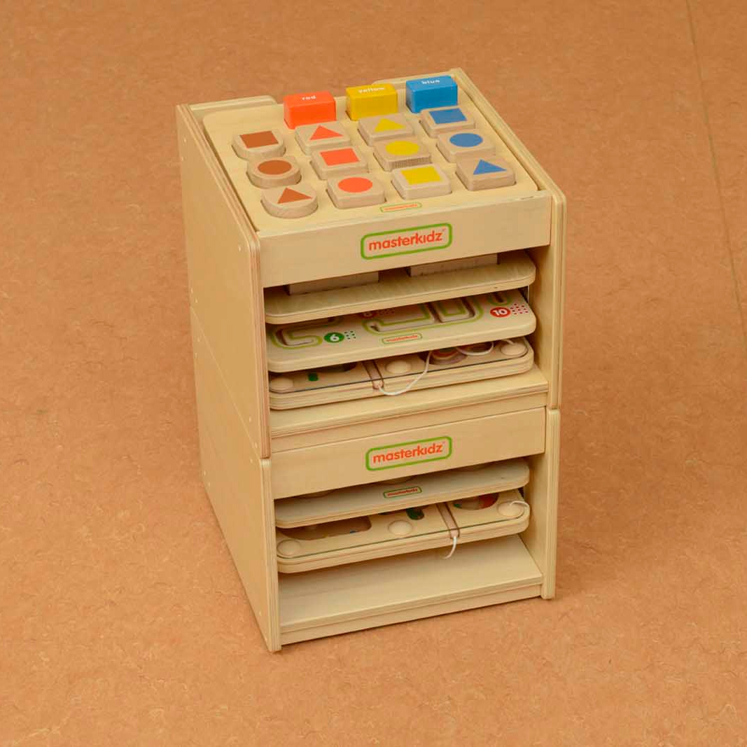 Masterkidz medinė spintelė tai praktiškas sprendimas patogiems ženklams laikyti. Jame tilps iki 3 tabletės 28 x 28 cm, kuris puikiai tinka mažoms kolekcijoms. Spintelės viršuje galima pastatyti papildomą plokštelę, tačiau jei reikia dar daugiau talpos, visada galite pridėti kitą tą pačią spintelę viršuje. Pagaminta iš medžio, ši spintelė yra draugiška aplinkai ir padeda sumažinti plastiko atliekų kiekį. Tvirta konstrukcija užtikrina ilgaamžiškumą ir saugumą.