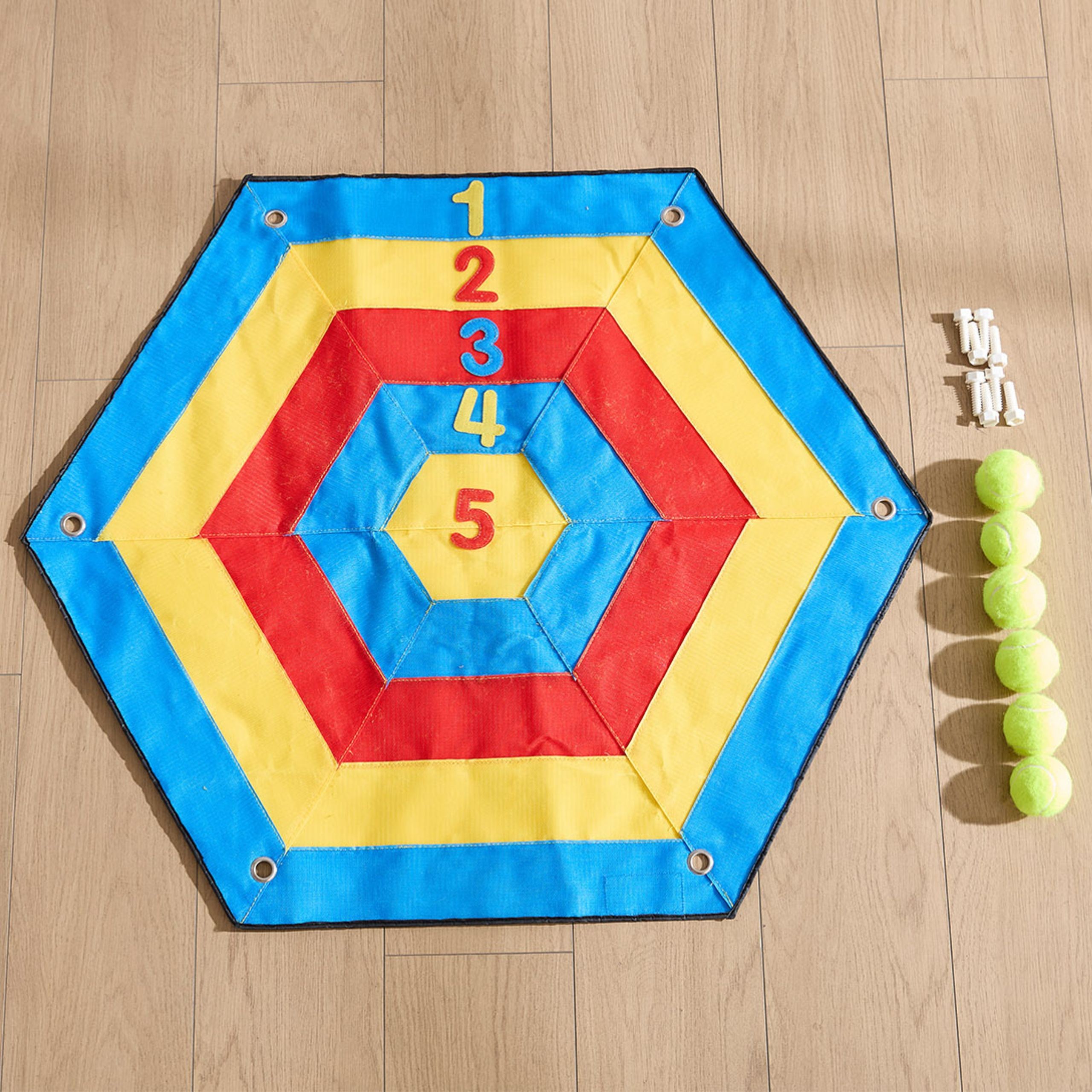 Milžiniška spalvota šešiakampė smiginio lenta / kilimėlis