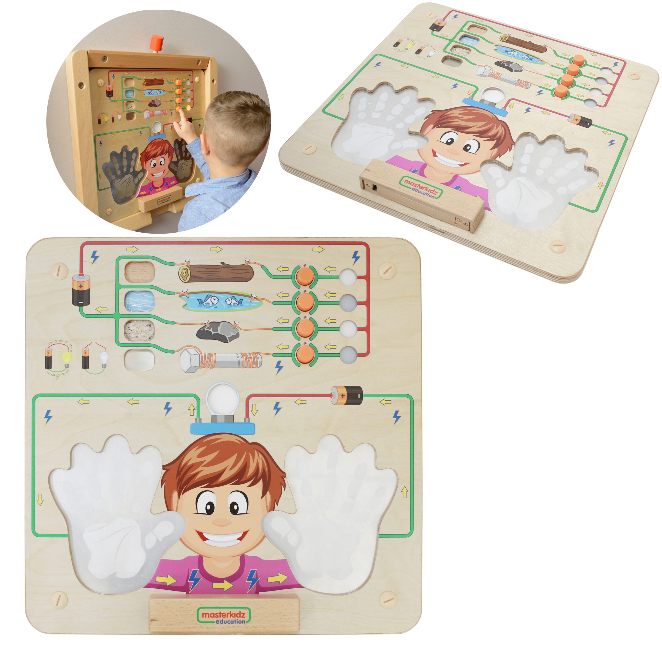 Atraskite žavų elektros pasaulį su „Masterkidz“ laidumo eksperimentų mokymosi lenta! Šis novatoriškas žaislas leidžia vaikams nuo 3 metų saugiai ir įdomiai eksperimentuoti su elektros grandinėmis. Su dviem interaktyviomis grandinėmis mažyliai gali sužinoti, kaip veikia elektra, išbandyti skirtingas medžiagas kaip laidininkus ir atrasti, kad net žmogaus kūnas gali praleisti elektrą. Tai puikus mokymosi ir pramogų derinys, įkvepiantis smalsumą ir skatinantis tyrinėti!