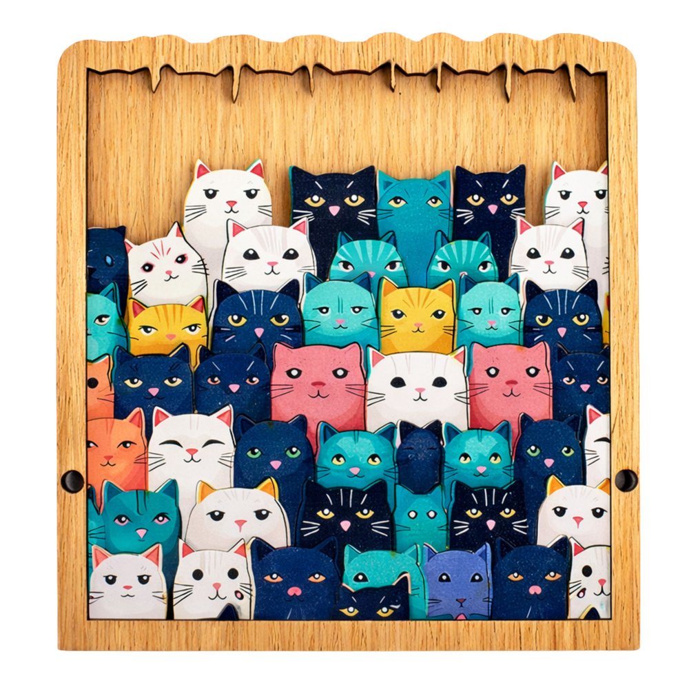 Ši medinė kačiukų dėlionė – žavingas ir lavinamasis žaislas, kuris sujungia kūrybišką žaidimą su mokymusi. Spalvingos, kruopščiai išpjautos kačiukų galvutės sudaro mielą kompoziciją, kurią vaikas gali surinkti rėmelyje. Tai puikus pasirinkimas mažiesiems dėlionių mėgėjams ir visiems, kurie vertina estetiškus, natūralius žaislus.