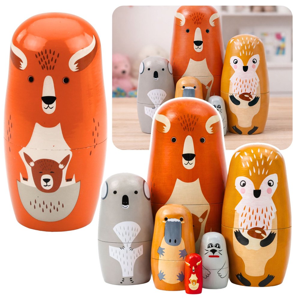 Ši medinė matrioška su miško gyvūnų motyvais – tai žaislas, kuris puikiai sujungia mokymąsi ir žaidimą. Rinkinį sudaro 6 skirtingo dydžio figūrėlės, kurias galima sudėti vieną į kitą ir sukurti klasikinę matrioškos bokšto formą. Kiekviena figūrėlė vaizduoja vis kitą miško gyvūną, todėl žaislas yra ne tik lavinantis, bet ir vizualiai patrauklus mažiesiems.