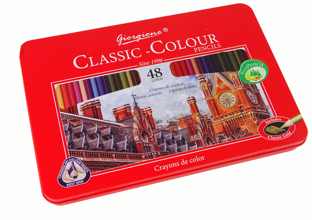 Meninių spalvotų pieštukų rinkinys metalinėje dėžutėje, 48 vnt.