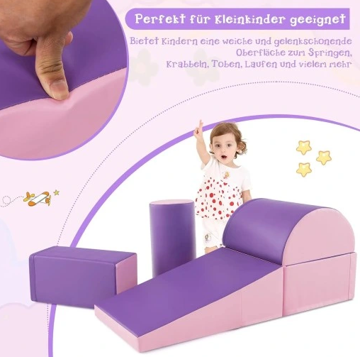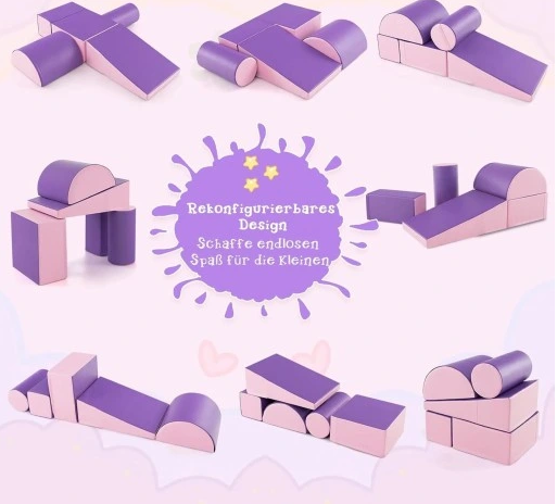 ✅Saugus, aktyvus žaidimas. Rinkinys pasižymi tankia, labai stora ir lanksčia putų struktūra. Jame nėra kietų konstrukcijų ar aštrių kampų, kurie galėtų pakenkti vaikų saugumui. Jis pakankamai minkštas, kad sušvelnintų kritimus, ir pakankamai tvirtas, kad būtų galima lipti, čiuožinėti, žaisti ir dar daugiau.