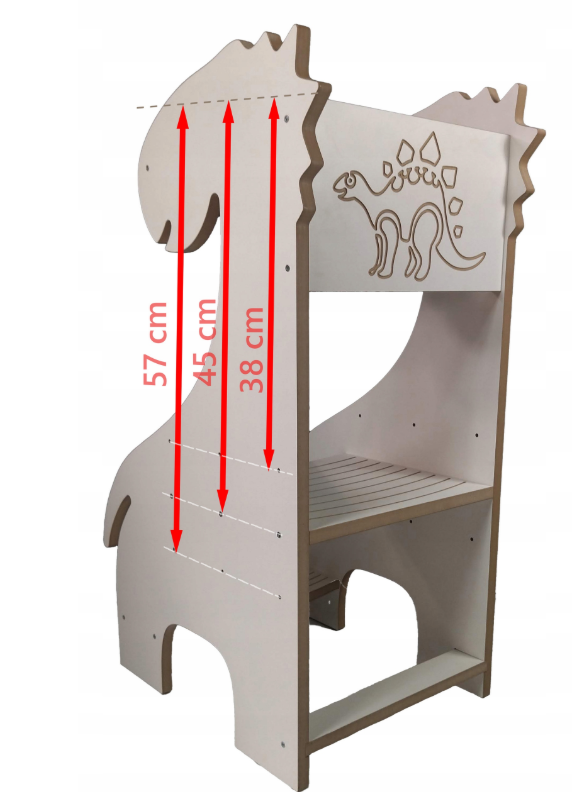 Dėl specialaus neslystančio laiptelių paviršiaus vaikas „Dino” virtuvės pagalbininkas yra ne tik patrauklus dizainas ir tvirta konstrukcija, bet visų pirma maksimalus naudojimo saugumas – net ir energingiausiems mažyliams.