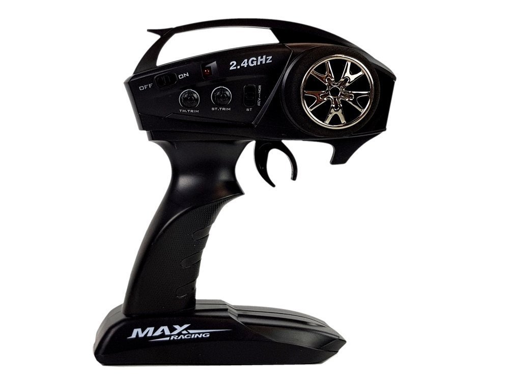 Rinkinyje yra patogus ir tikslus valdymo pultas. Jei esi valdęs profesionalų modelį, žinai, kad tokio tipo pultai suteikia maksimalų vairavimo malonumą. Belaidis valdymas veikia 2.4 GHz dažniu, todėl galima lenktyniauti didesnėje grupėje be trukdžių. Pultas turi atbulinės eigos jungiklį, ratų reguliavimą, akceleratoriaus valdymą ir leidžia reguliuoti greitį vairuojant. Priekinė ir galinė TPR gumos pakaba dar labiau pagerina sukibimą.