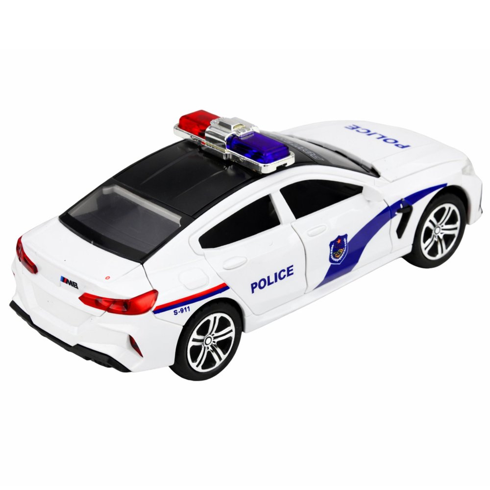 Šis baltas policijos automobilis – tikroviškas patrulinio automobilio modelis, sukurtas mažiesiems veiksmo ir tarnybinių transporto priemonių gerbėjams. Sportiškas siluetas, ryškūs POLICE užrašai, mėlynai raudonas švyturėlis ir detalus kėbulo dizainas suteikia žaislui autentišką išvaizdą, primenančią tikrus policijos automobilius.