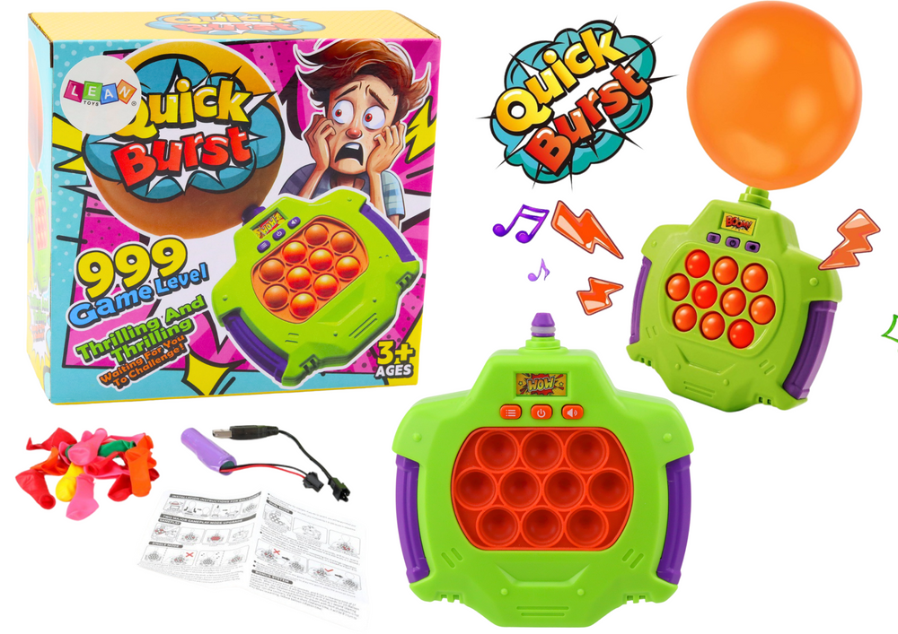 Šis Pop-It elektroninis žaidimas „Sprogstantys balionai“ sujungia sensorinį žaidimą, reakcijos lavinimą ir linksmą konkurenciją. Žavingas dizainas, spalvingi mygtukai ir dinamiški garsai iš karto patraukia vaikų dėmesį ir paverčia žaidimą įtraukiančia patirtimi.