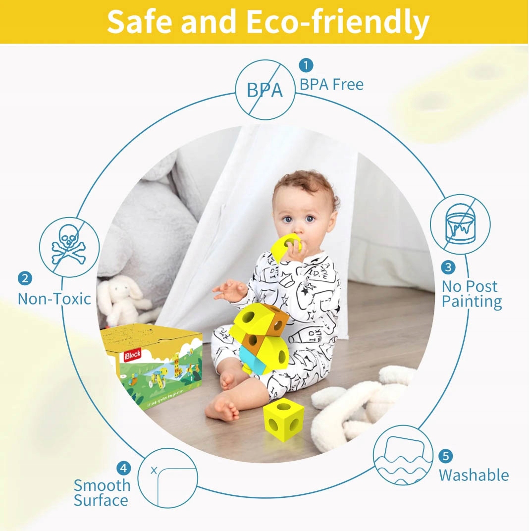 Kaladėlės pagamintos iš lengvo, malonaus liesti putplasčio, kuris yra visiškai saugus mažoms rankytėms. Dėl CE sertifikato tėvai gali būti tikri, kad žaislas atitinka visus Europos saugos standartus. Rinkinį sudaro įvairių formų ir spalvų detalės, kurios leidžia vaikui konstruoti tiek paprastus, tiek sudėtingesnius objektus. Tai puikus būdas lavinti loginį mąstymą, problemų sprendimo įgūdžius ir rankų miklumą.