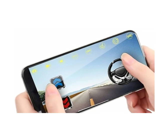 Be to, nuotolinio valdymo pultas turi specialų telefono laikiklį, kurio dėka galite stebėti tiesioginį vaizdą iš transporto priemonės kameros, fotografuoti ir net įrašyti!