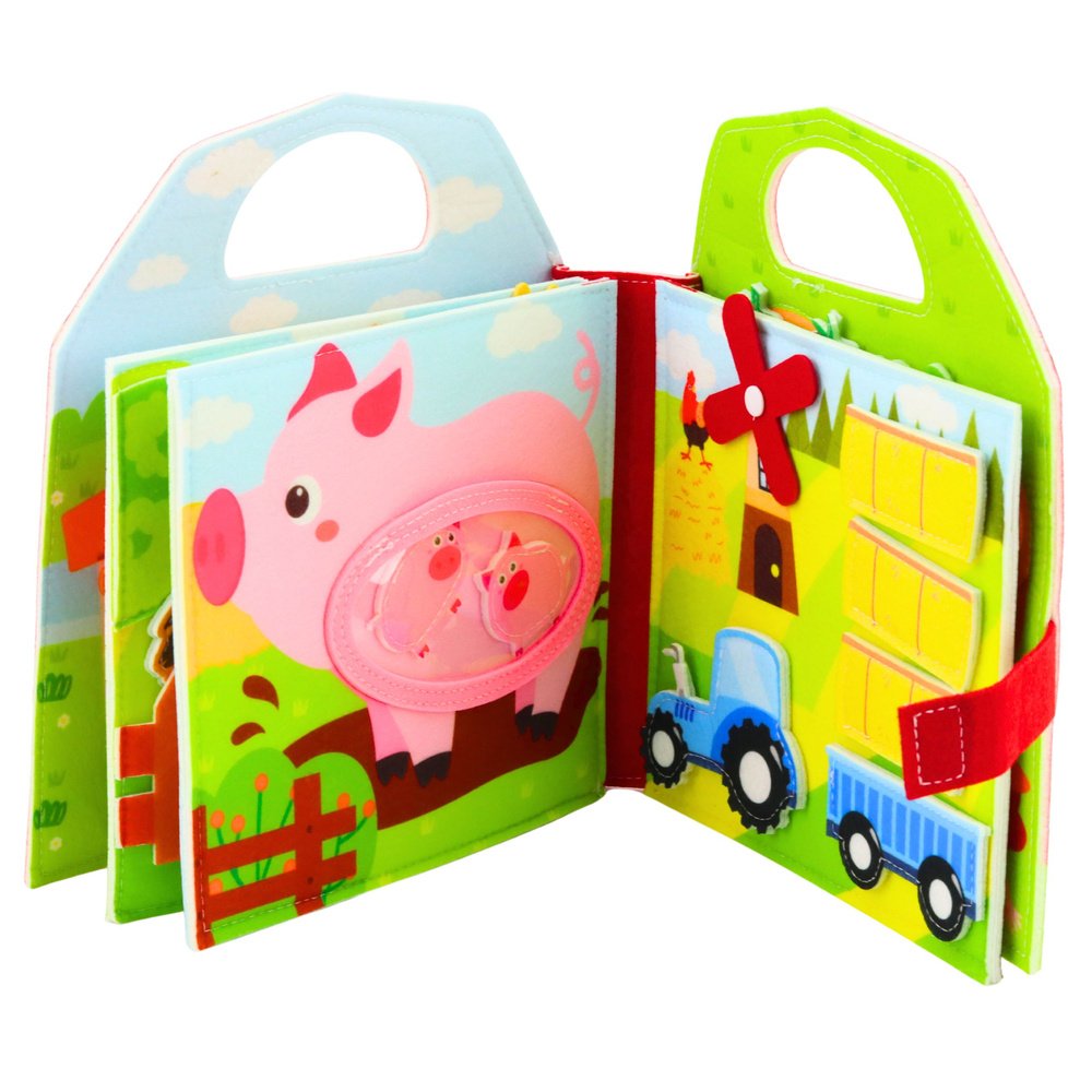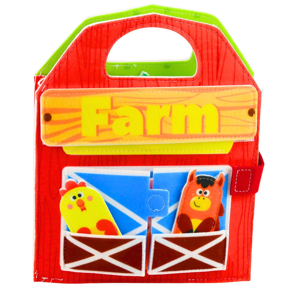 Kiekviename knygelės puslapyje yra įvairių minkšto veltinio elementų, kuriuos galima derinti, perkelti ir tvirtinti. Vaikai gali atrasti karvę, arklį, kiaulę, antį ir kitus ūkio gyvūnus, taip pat įvairius ūkio objektus. Tokia veikla lavina rankų–akių koordinaciją, smulkiąją motoriką, pastabumą ir loginį mąstymą. Kiekvienas puslapis siūlo naują sceną ir užduotį, kuri kviečia vaiką kurti savo istorijas.
