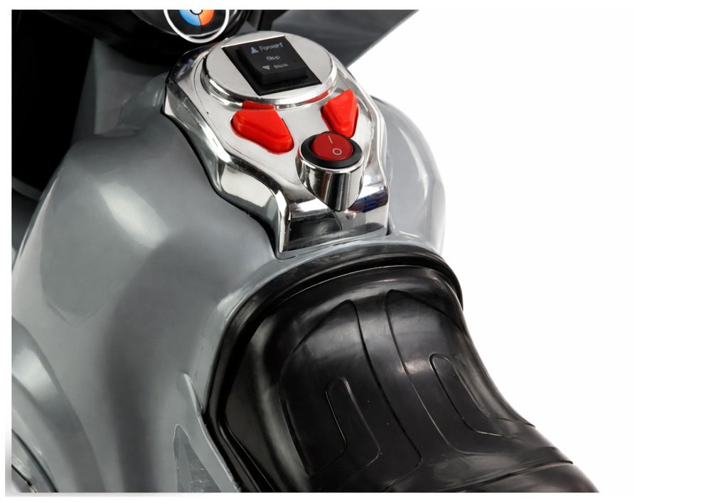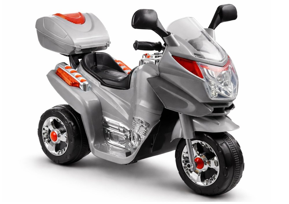 Modelis išsiskiria moderniu dizainu: blizgus sidabrinis kėbulas, spalvingi lipdukai ir chromo imitacijos detalės suteikia motociklui tikrovišką, sportišką išvaizdą. Tvirta ABS plastiko konstrukcija užtikrina ilgaamžiškumą, o trijų ratų sistema suteikia stabilumo vaikams, kurie dar tik mokosi išlaikyti pusiausvyrą.
