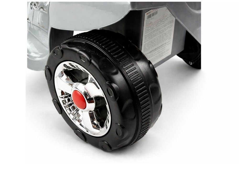 19 cm ratai su guminiu protektoriumi užtikrina tylų ir sklandų važiavimą įvairiais paviršiais. Priekinis skaidrus stiklas, šoniniai veidrodėliai ir LED apšvietimas suteikia modeliui tikroviškumo ir pagerina matomumą. Gale yra atsidaranti bagažinė, kurioje mažasis vairuotojas gali laikyti savo žaislus ar „kelionės lobius“.