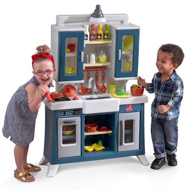 Step2 vaikų žaidimų virtuvė pasižymi realistinė estetika kaimo prašmatnus su moderniu funkcionalumu ir daug vietos saugykloje! Paruoškite patiekalus dideliam dirbtinis granito stalviršis. Reach viršutinėms spintelėms su lentynomis, skirtomis puodeliams ir plokštėms stalui nustatyti. Žaislas turi kaimo stiliaus kriauklę su čiaupu, tikrovišką „copper” pakabinamą laikymo juostą. Ši virtuvė yra stilingas papildymas bet kurioje žaidimų erdvėje. Elektroniniame degiklyje yra linksmos šviesos ir tikroviški šnypščiantys garsai, o virš kriauklės kabanti veikianti lempa virtuvės linksmybes paverčia realybe Gaminiui reikia 2 „AA” baterijų ir 2 „AAA” (į komplektą neįeina)