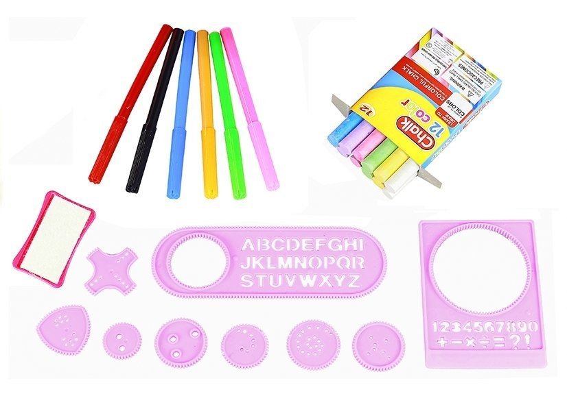 Ši spalvinga, edukacinė ir patogi 2in1 sulankstoma piešimo lenta lagamine sukurta mažiesiems menininkams, kurie mėgsta piešti, kurti ir tyrinėti. Vienoje pusėje vaikas gali piešti kreidele, kitoje – markeriu, todėl veiklų pasirinkimas platus, o kūryba – neribota. Lenta išsiskleidžia į dvi puses, tad vienu metu gali kurti net du vaikai.