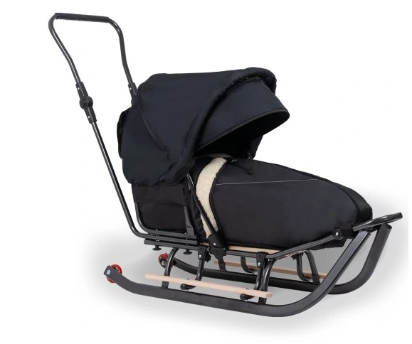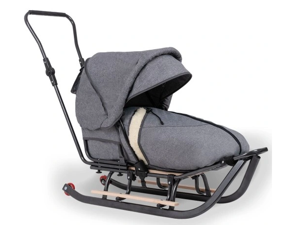 Daugiafunkcinės „Termo“ rogės su stūmikliu, gobtuvu, pakojais, ratukais ir šiltu miegmaišiu. Patogios, saugios ir pritaikytos žiemos pasivaikščiojimams.