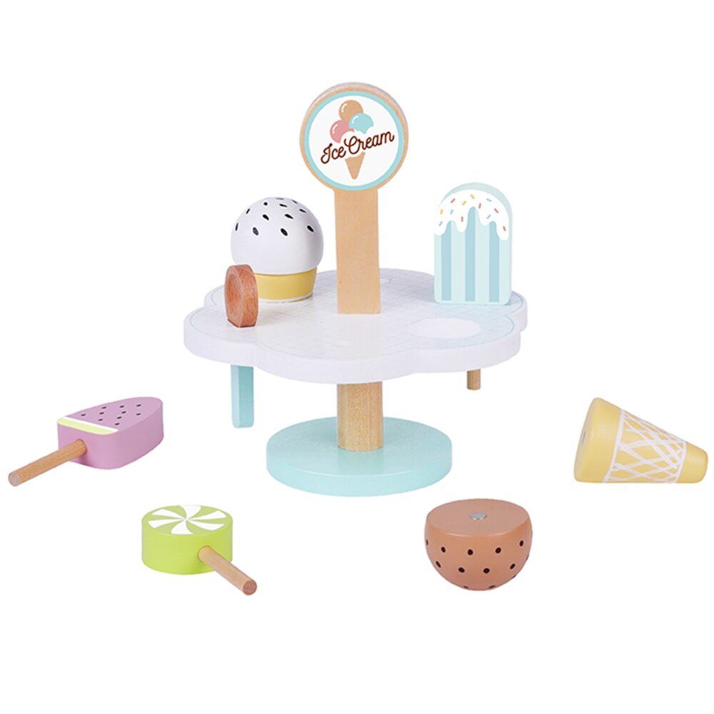 Magnetiniai tvirtinimai užtikrina, kad ledai stovėtų stabiliai, todėl mažyliams lengva juos paimti, sudėti ir „parduoti“. Tai žaislas, kuris natūraliai skatina socialinį bendravimą, vaidmenų žaidimus ir kūrybišką mąstymą.