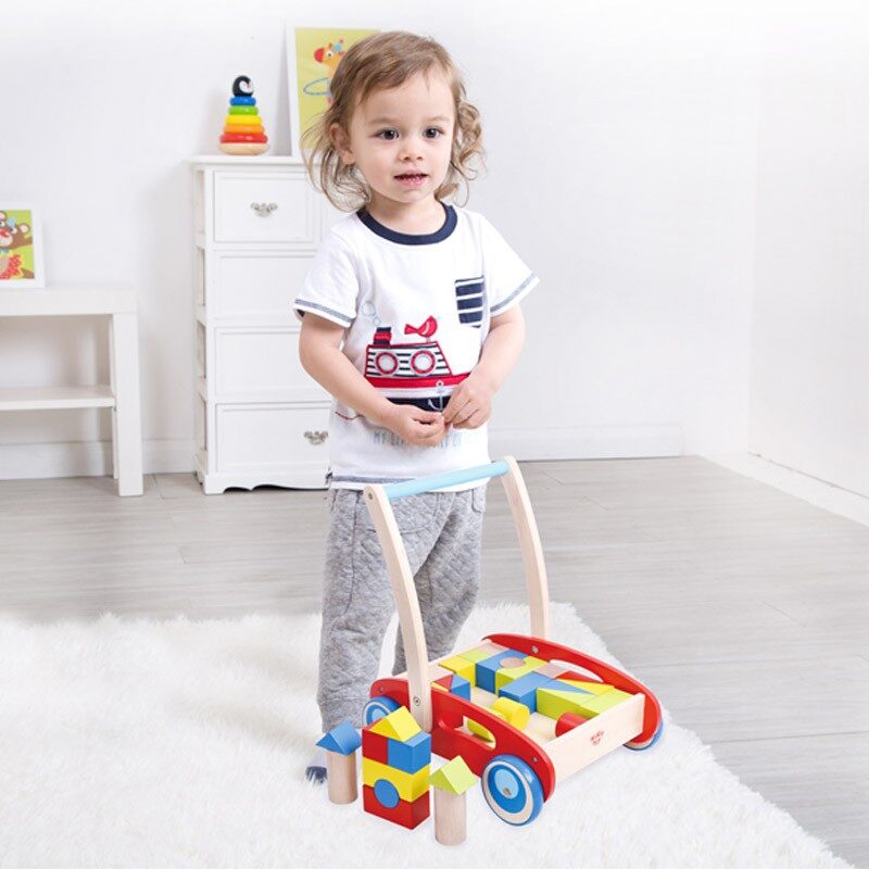 Šis gražus medinis stūmiklis su kaladėlėmis iš „Tooky Toy“ yra puiki pagalbinė priemonė pirmiesiems žingsniams. Stūmiklis su kaladėlėmis padeda išlaikyti pusiausvyrą ir pagreitina mokymąsi vaikščioti . Jis taip pat puikiai tinka kaip stūmiklis pirmiesiems pasivaikščiojimams . Rankena yra tokiame aukštyje, kad jūsų vaikui būtų lengviau stumti vežimėlį. Kaladėlių dėjimas į krūvą, transportavimas ir mėtymas lavina vaizduotę, rankų miklumą , akių koordinaciją ir kūrybiškumą. Kaladėlės gali būti labai naudingos mokantis matematikos ir spalvų atpažinimo . Žaidimas su kaladėlėmis lavina kognityvinius įgūdžius ir moko priežasties ir pasekmės ryšių.