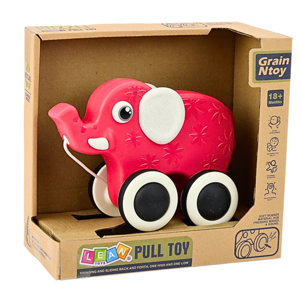 Raudonas traukiamas drambliukas – žavingas, saugus ir funkcionalus žaislas, sukurtas patiems mažiausiems vaikams. Jis padeda lavinti motorinę koordinaciją, pusiausvyrą ir rankų miklumą. Tai puiki pagalba mokantis vaikščioti, kuri kartu skatina vaiką judėti ir savarankiškai žaisti. Dėl patogios virvelės mažylis gali pasiimti drambliuką visur – į kambarį, terasą, sodą ar pasivaikščiojimui namuose, mokydamasis valdyti judėjimo kryptį ir tempą.