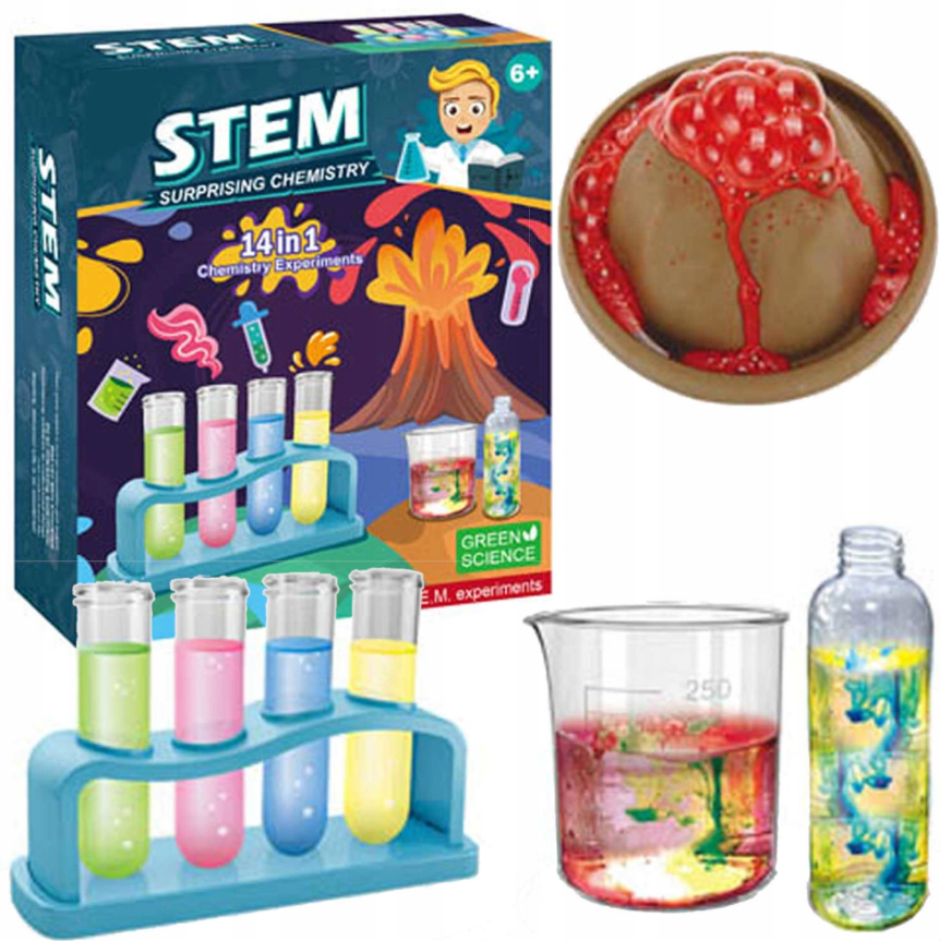 VAIKAMS SKIRTAS MOKOMASIS RINKINYS VULKANAS MAŽASIS CHEMIKAS 14IN1 SPROGIMAS 14 EKSPERIMENTŲ