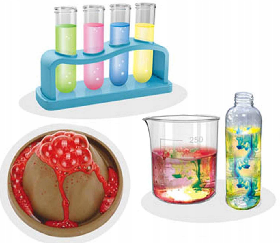 ✅ 14 įdomių eksperimentų – atraskite įvairius eksperimentus, kurie atskleidžia nepaprastus cheminius reiškinius, tokius kaip sprogstantis ugnikalnis ar vaivorykštinis lietus!