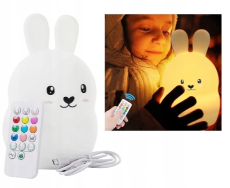 Lempos spalva keičiasi palietus / bakstelėjus zuikį . Nuotolinio valdymo pultas yra puikus sprendimas maitinančioms motinoms, kurios gali lengvai valdyti lempą maitindamos krūtimi.
