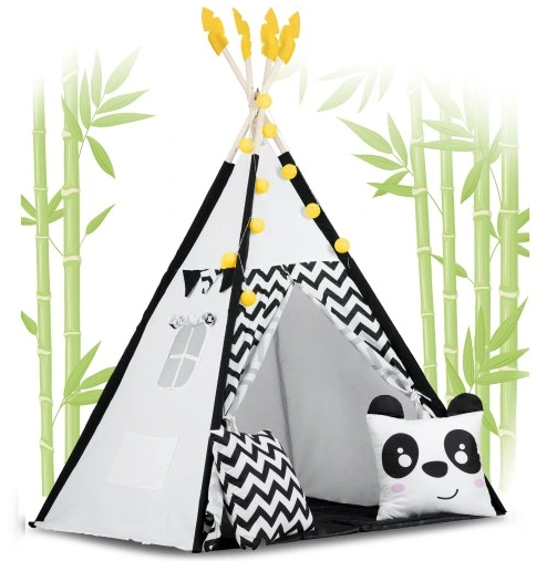 Vaikiška „Nukido“ tipo palapinė su girlianda ir švieselėmis, juodai balta spalva ir panda