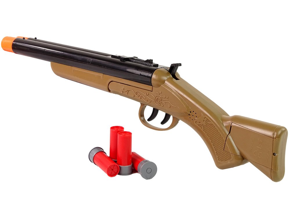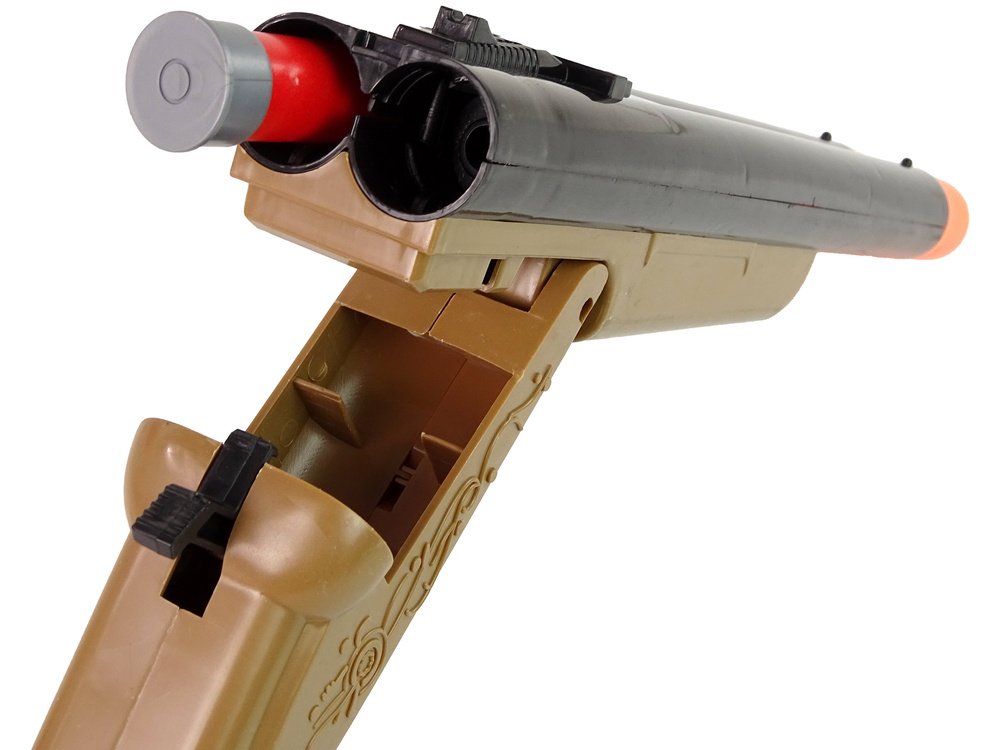 Šautuvas atsidaro per viduryje esantį lankstą – kaip tikruose vesternuose. Į vidų galima įdėti dvi dideles imitacines tūtas, o uždarius šautuvą jis paruoštas „šaudymui“. Du atskiri gaidukai leidžia „iššauti“ vieną po kito, tačiau iš vamzdžio niekas neišskrenda – girdimas tik saugus garsinis efektas.