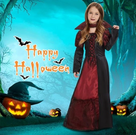 ✨ Gotikinio stiliaus ir karališkos elegancijos derinys – didinga, aukšta apykaklė , paryškinanti vampyro aurą, ir gražiai surištas korsetas , suteikiantis visam įvaizdžiui karališką akcentą. Visa tai leidžia kiekvienai merginai pasijusti tikra vampyrų karaliene ! Tobulas elegancijos ir paslapties derinys.