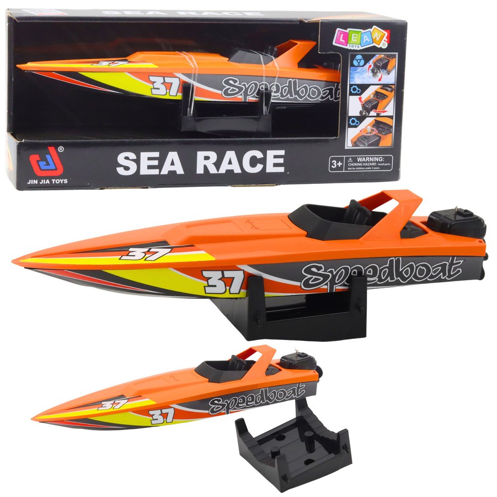 Sportiškas dizainas, ryškios spalvos ir tvirtas korpusas suteikia žaislui išskirtinę išvaizdą. Papildoma funkcija – krypties reguliavimas naudojant pasukamą variklio rankenėlę, todėl vaikai gali valdyti katerio judėjimo kryptį ir kurti įvairius žaidimo scenarijus.