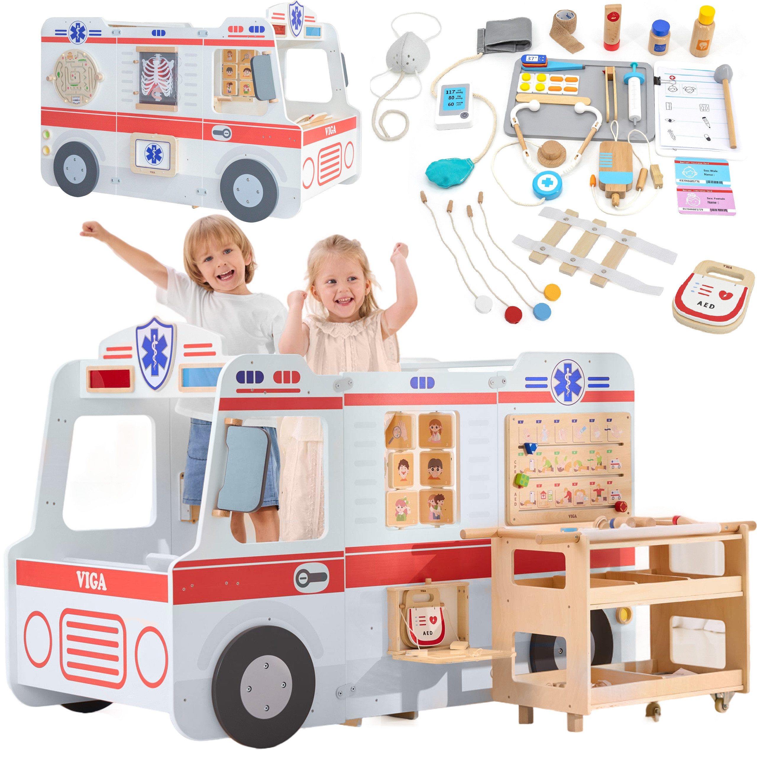 VIGA „Super Greitoji Pagalba“ – tai interaktyvus ir edukacinis rinkinys, kuris nukelia vaikus į skubios medicinos pasaulį. Žaidimo metu vaikai gali imituoti įvairias roles: greitosios pagalbos vairuotoją, paramediką ar dispečerį, mokydamiesi pirmosios pagalbos pagrindų. Rinkinys turi daugybę priedų, tokių kaip neštuvų vežimėlis, medinis telefonas, stetoskopas ir kiti įrankiai, kurie daro žaidimą realistišką. Vaikai gali mokytis tvarstyti žaizdas ar matuoti temperatūrą, lavindami vaizduotę ir skatinami rūpestingumo. Rinkinį sudaro 25 skirtingi priedai, suteikiantys begalę kūrybinio žaidimo galimybių.