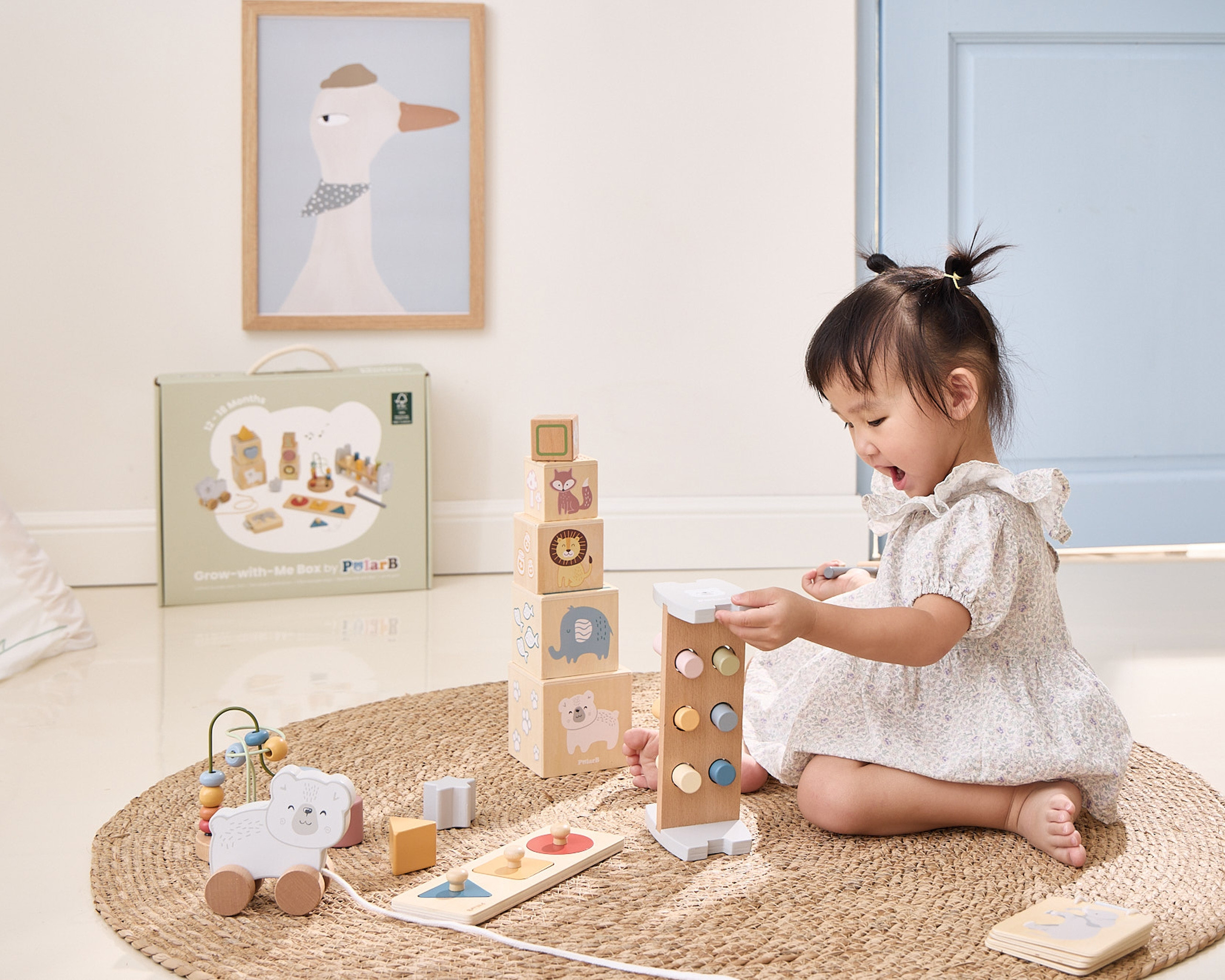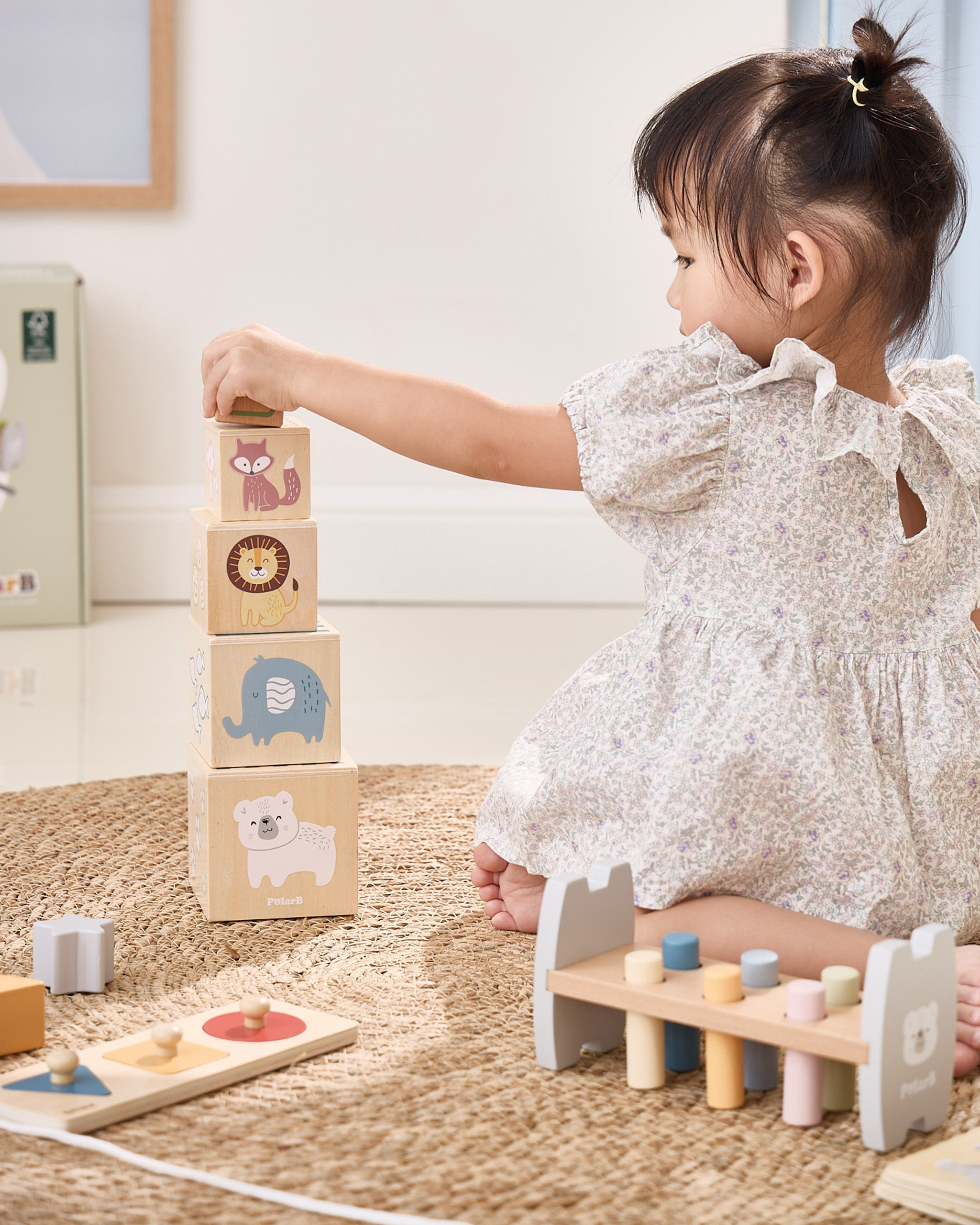 ryškūs raštai ir paprastos formos palengvina mokymąsi per žaidimą,