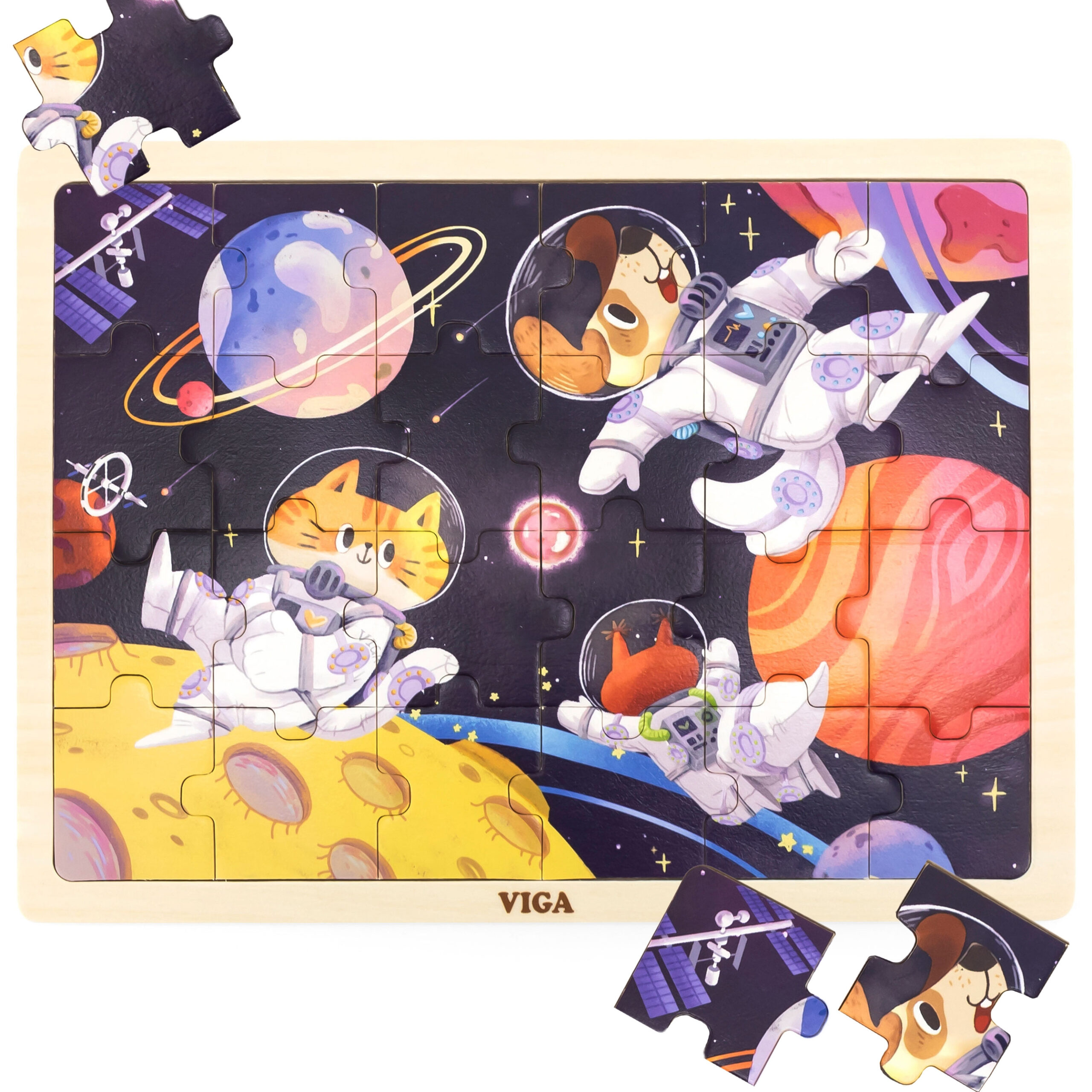 VIGA medinė dėlionė „Kosminis nuotykis“, 24 detalės