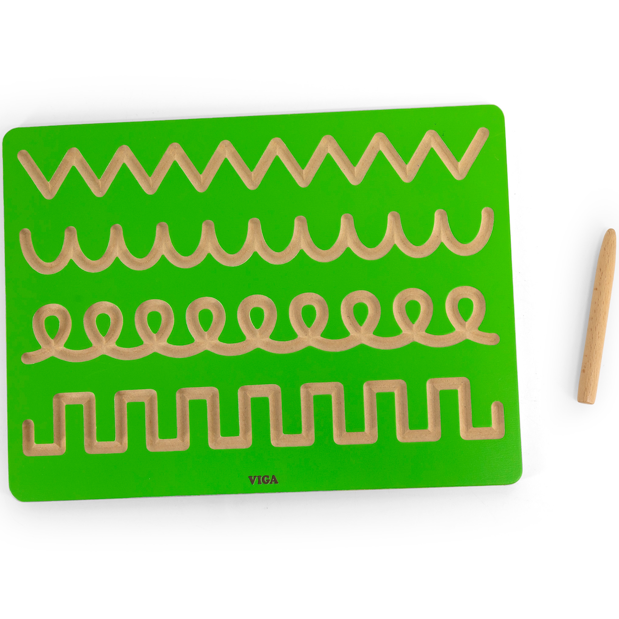 VIGA Medinė Grafomotorinė Lentelė – Šlaiteliai ir Rašymo Pradmenys