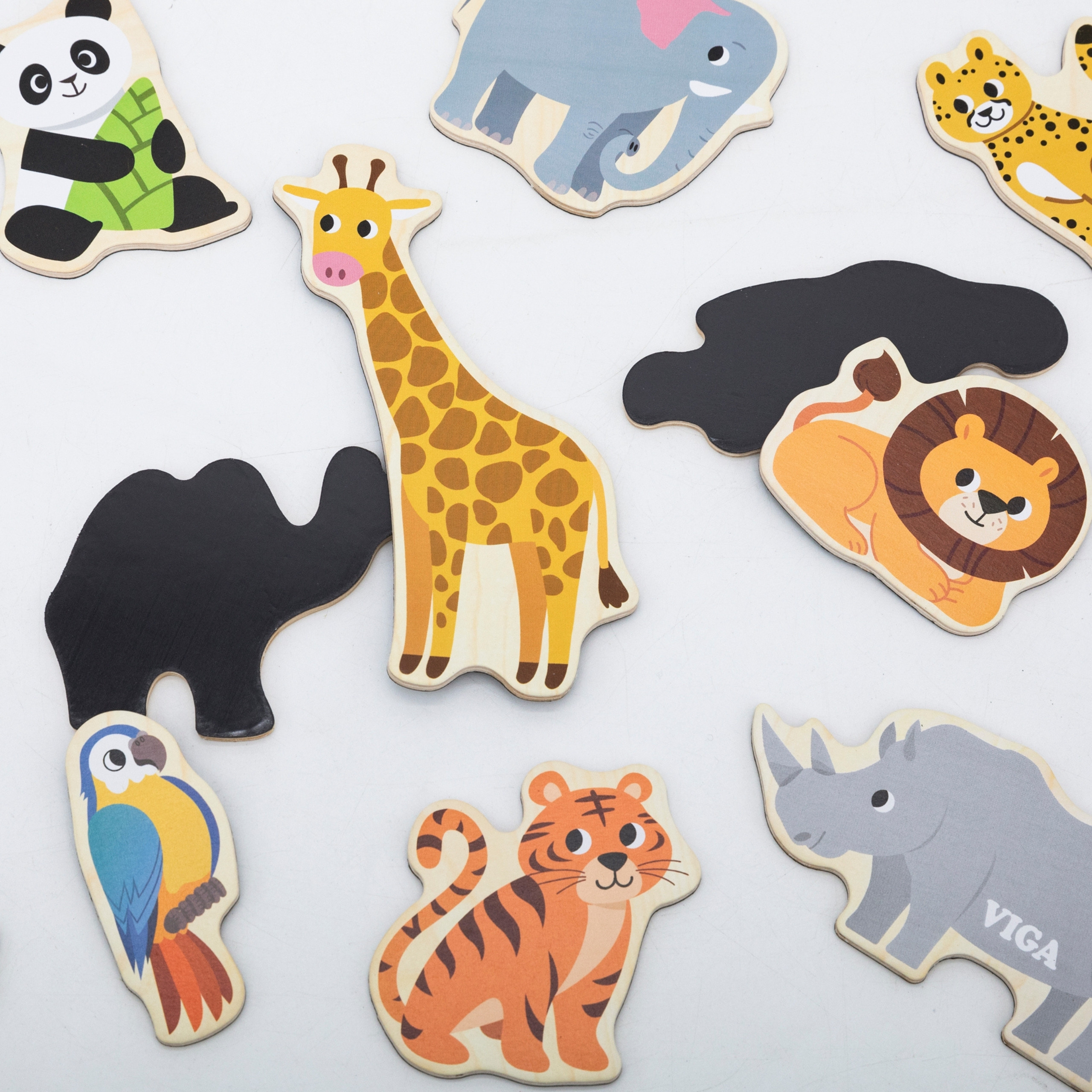 VIGA mediniai magnetukai „Laukiniai gyvūnai“ – spalvingi edukaciniai magnetai
