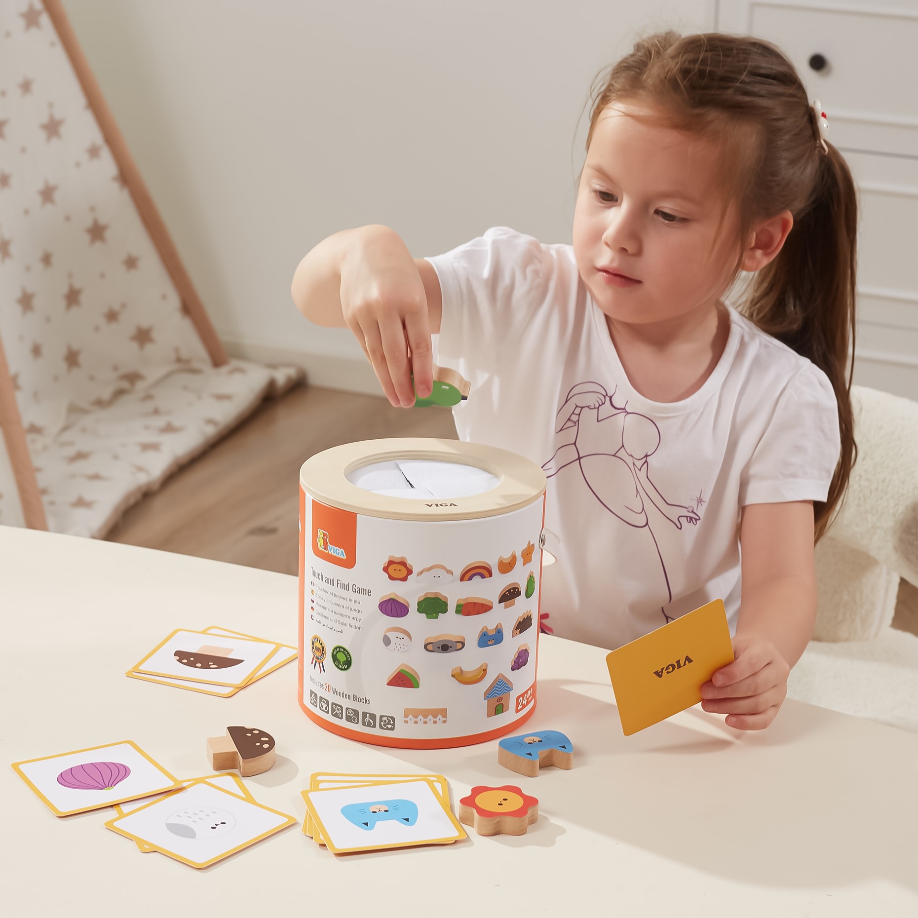 „ Viga “ aklųjų žaidimas ne tik linksmins jūsų vaiką, bet ir lavins esminius mokykloje reikalingus įgūdžius . Žaidimą sudaro 20 gražiai pagamintų, spalvingų medinių kaladėlių, 20 žaidimo kortų ir pakuotė su išpjauta skylute, kad vaikas galėtų žaisti „liesdamas ir jausdamas“, taip pat ji tarnauja kaip daiktų laikymo vieta.